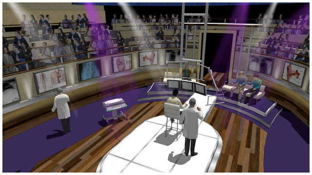 A new style of reality show meets informative medical show for Fox. I was given the task of reproducing a typical Victorian medical amphitheater, updating it to the 21st century and because of the sensitive content of the show not being too ' showbiz ' despite the show being in a prime time slot.