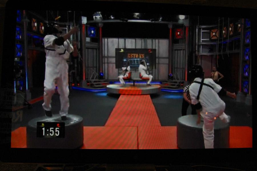 Spanish speaking game show with lots of water and slime