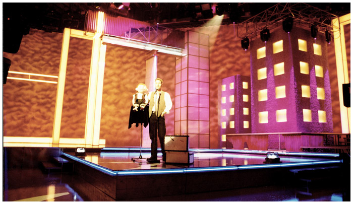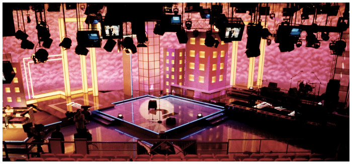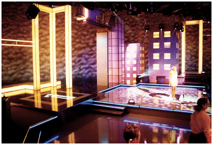 One of my first big sets this talent show was open to singers / comedians / speciality acts. The set had 3 stages allowing for re sets on this completely live show. LWT studio one provided me the width.